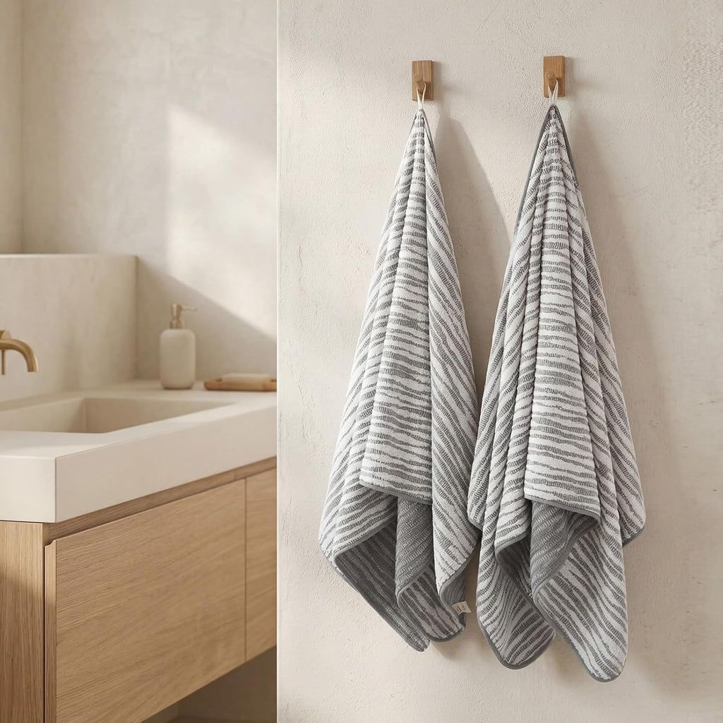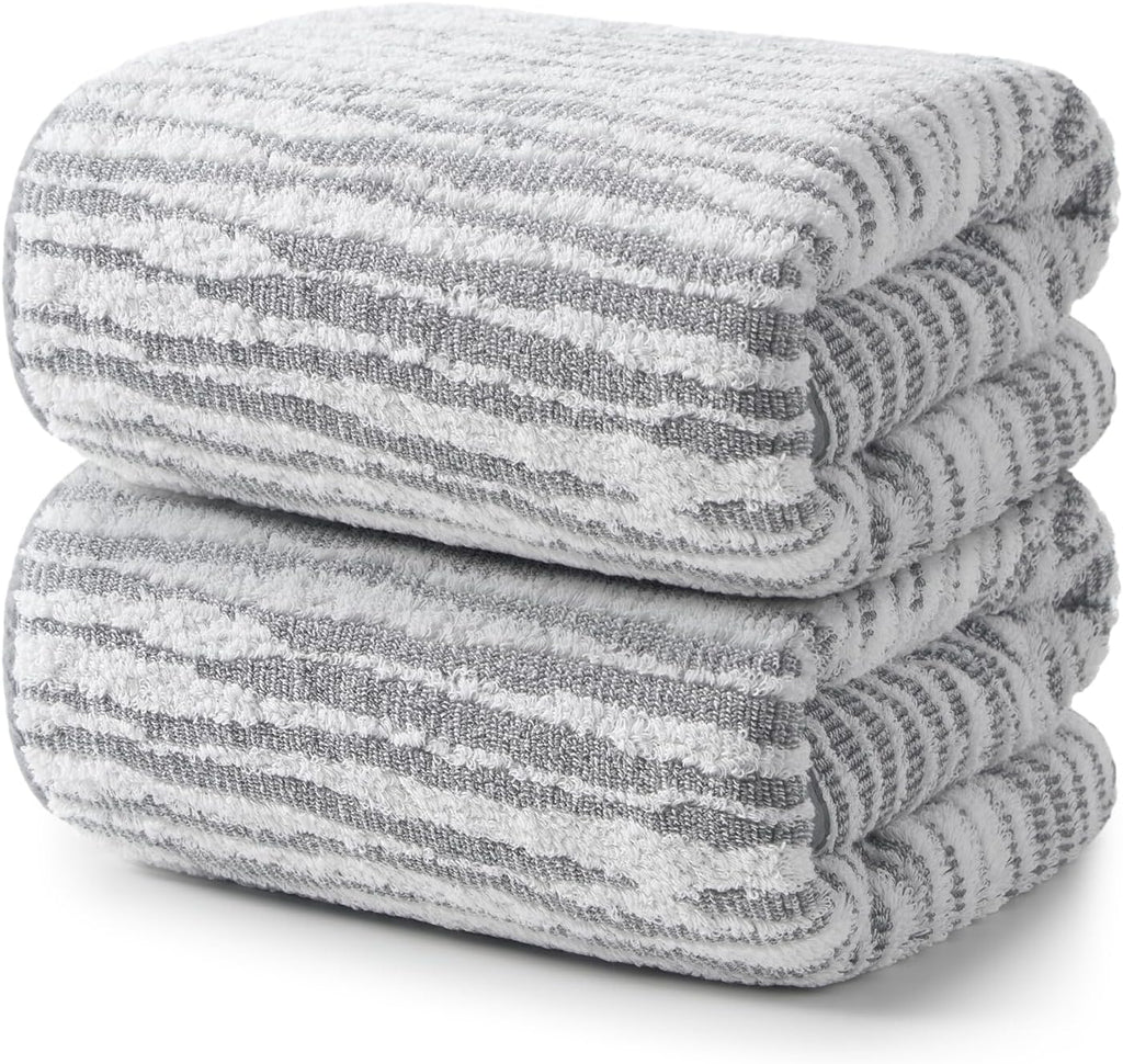 【Premium Luxury Experience】Crafted with 550 GSM 100% cotton bath towels, these luxury bath towels offer a skin friendly touch for a spa like feel at home. The durable weave of this 2-pack of bath towels ensures they stay soft even after many washes, making them the perfect choice for your bathroom