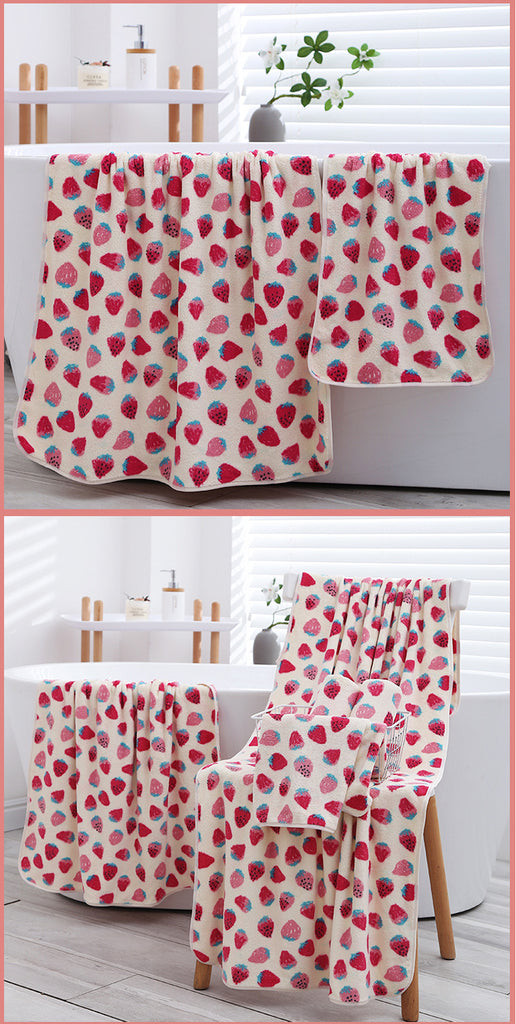 Wrap yourself in luxury with this cute and functional Strawberry Towel Set. Unlike standard rough towels, the coral fleece material provides an incredibly soft touch that reduces friction on the skin and hair. This makes it an excellent choice for drying hair without causing frizz, or for use on delicate skin. The material is also breathable and quick-drying, which is a significant advantage in preventing damp odours during humid weather.