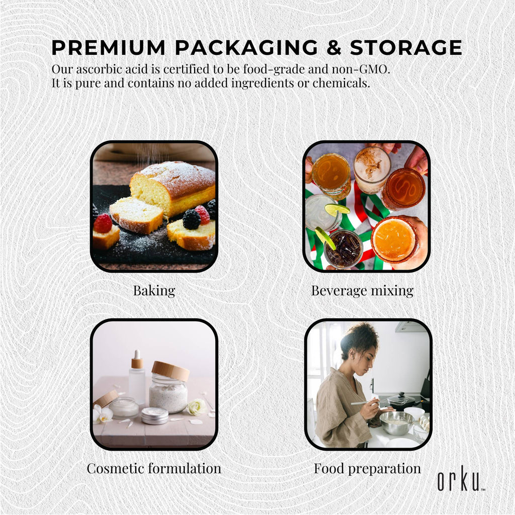 Our Ascorbic Acid Powder (L-Ascorbic) has a purity of 99.8%. More commonly known as Vitamin C Powder, it is pure Pharmaceutical and Food Grade and GMO Free. It serves as a food additive/antioxidant for vitamin C fortification in food and beverages.