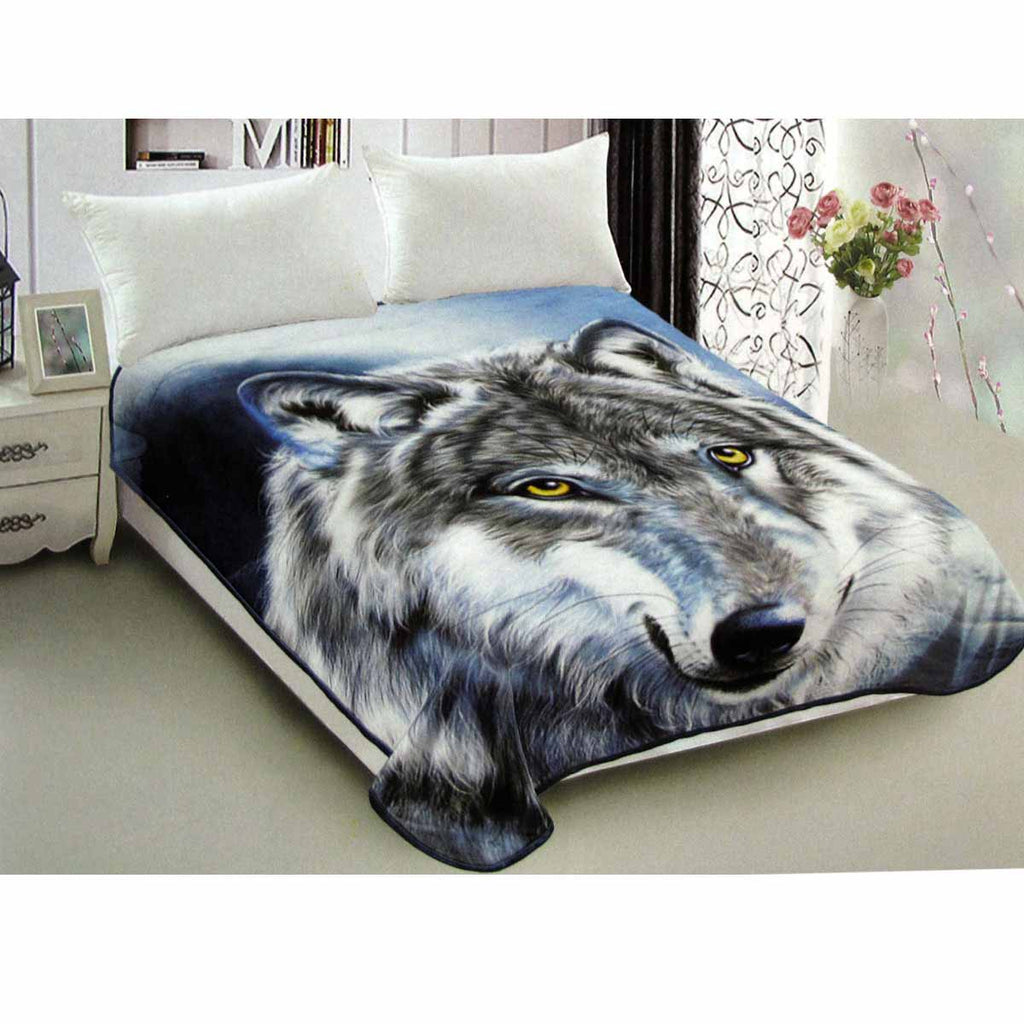 Wild Wolf Reversible Mink Blanket Throw Rug Queen 200 x 240cm