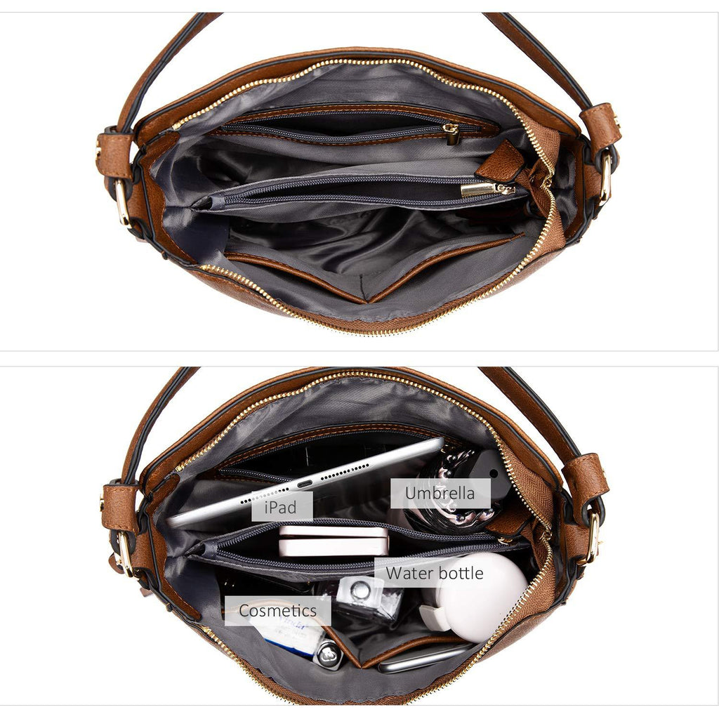 - Large Capacity Design: Spacious interior provides ample room for your daily necessities, including a tablet, wallet, phone, cosmetics, and more, making it perfect for work, shopping, or travel.