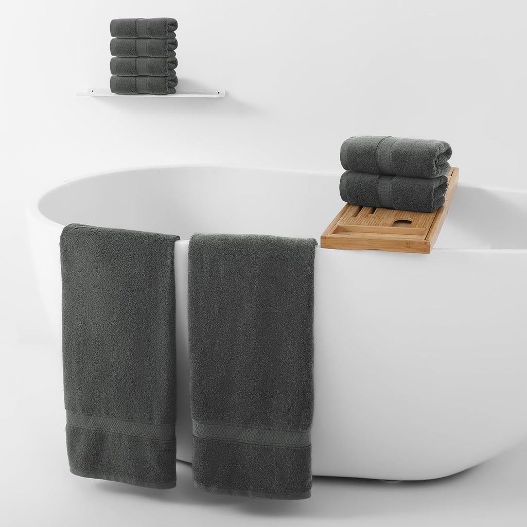 Durable Easy to Care - Reinforced edges provide extra strength and durability. These grey bathroom towel sets stay flat and last longer, even with daily e. Towels are machine washable and retain their softness and shape after multiple washes, with low lint, no shrinkage, and hassle-free maintenance for everyday e