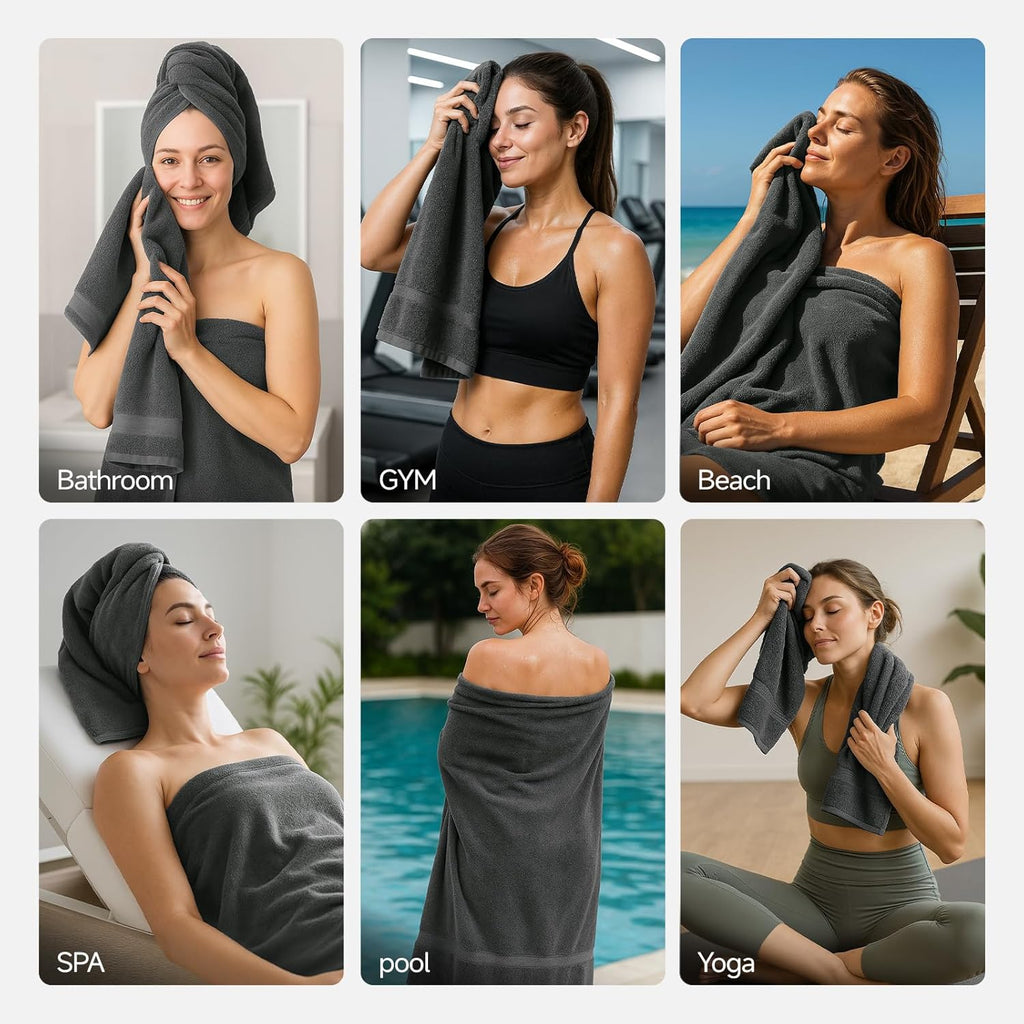 Premium 100% Cotton Material - bath sheets is expertly crafted from 100% premium cotton, offering a natural, breathable, skin-friendly experience for adults. These high-quality cotton bath towel ver long-lasting performance with no shedding or fading. Ideal for daily home e, our soft oversized towel provide a relaxing touch after every shower