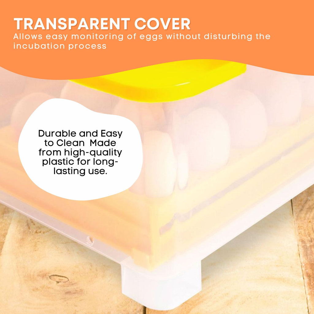 Includes an auto turning tray, hatchery days count, and electric LED Digital screen. With a simple and smart digital design, anyone can use our egg incubators easily, beginner or professional. The transparent case allows easy monitoring.