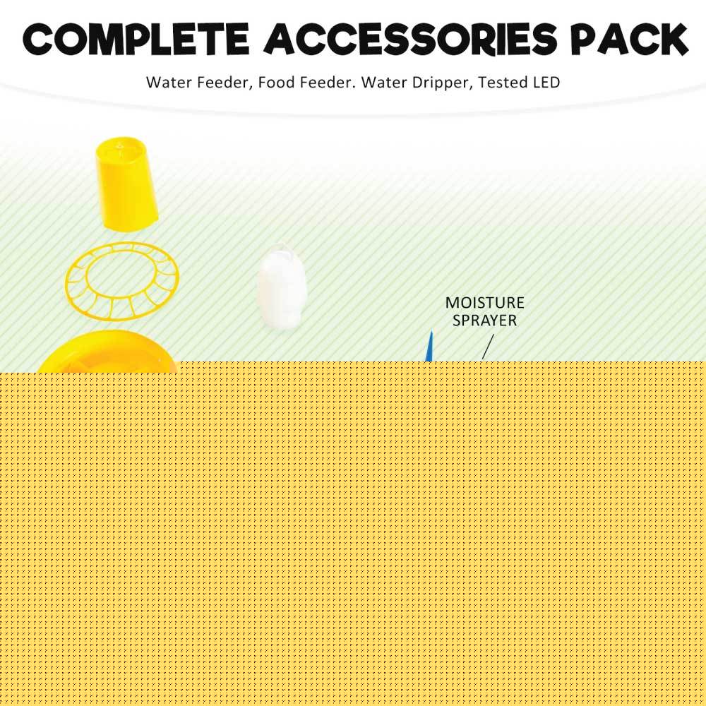 Automatic 96 (approx.) Egg Incubator with all accessories including Feeder, Drinker, Moisture Spray Bottle, Water adding Bottle Egg Candler (Tester).
