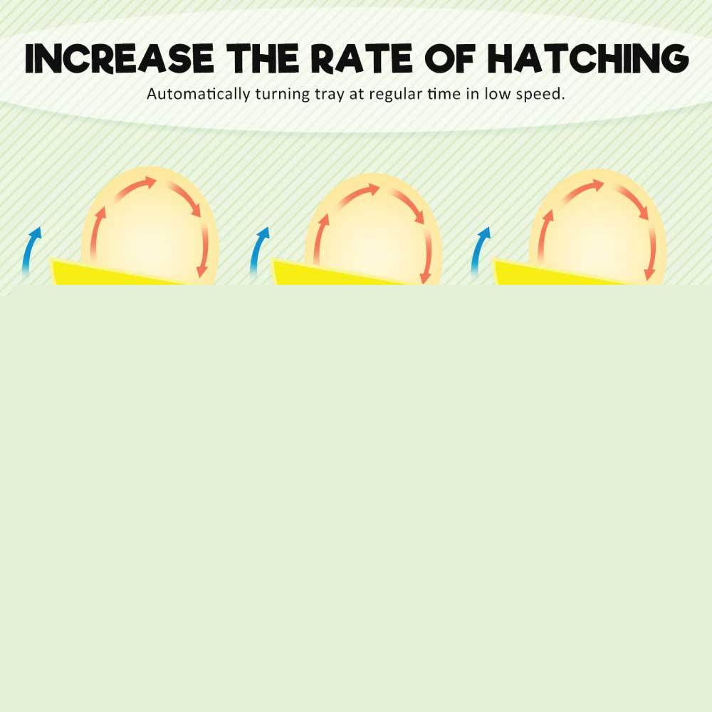 Includes an auto turning tray, hatchery days count, and electric LED Digital screen. With a simple and smart digital design, anyone can use our egg incubators easily, beginner or professional. The transparent case allows easy monitoring.