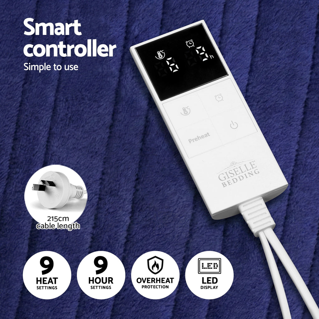 Giselle Electric Heated Fleece Flannel Throw Rug Blanket Double 200 x 180cm Navy