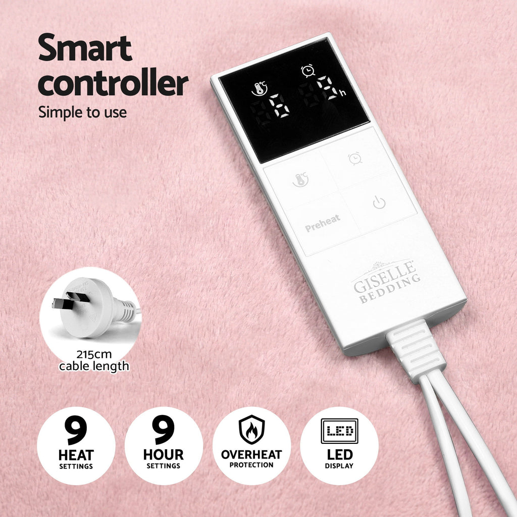Giselle Electric Heated Fleece Sherpa Throw Rug Blanket Washable Timer Pink