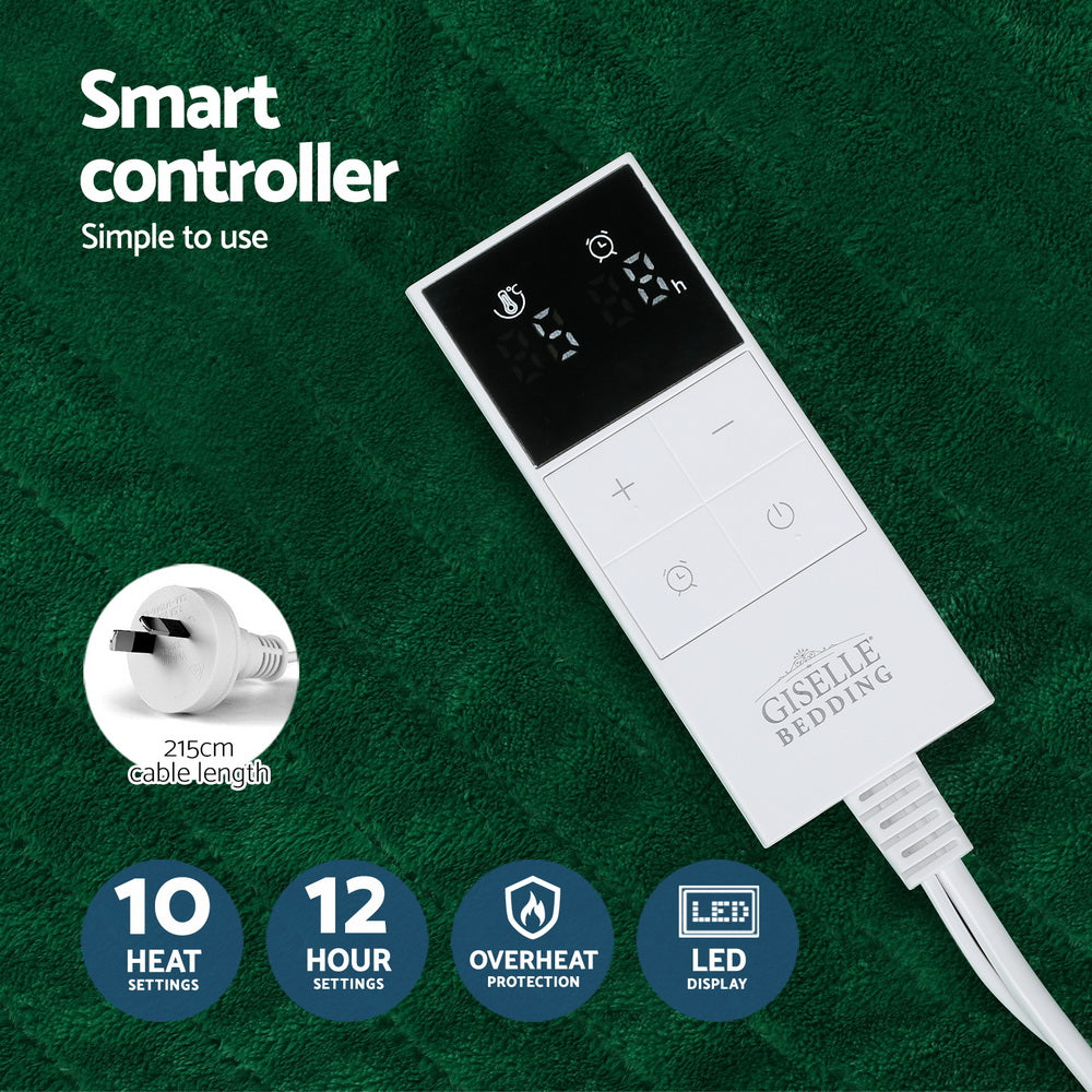 Giselle Electric Heated Throw Rug Blanket Timer 10 Settings Fleece Green