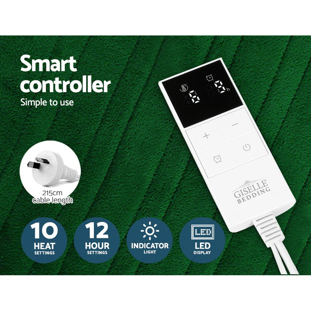 Giselle Electric Throw Rug Heated Blanket Washable Fleece Timer Green
