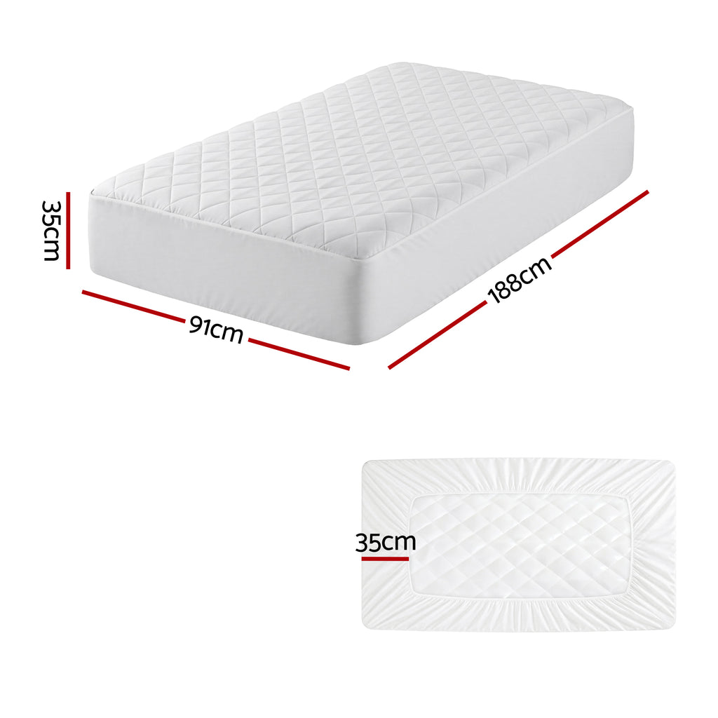 Giselle Waterproof Mattress Protector Cotton Quilted Fitted Cover 35cm Wall Single