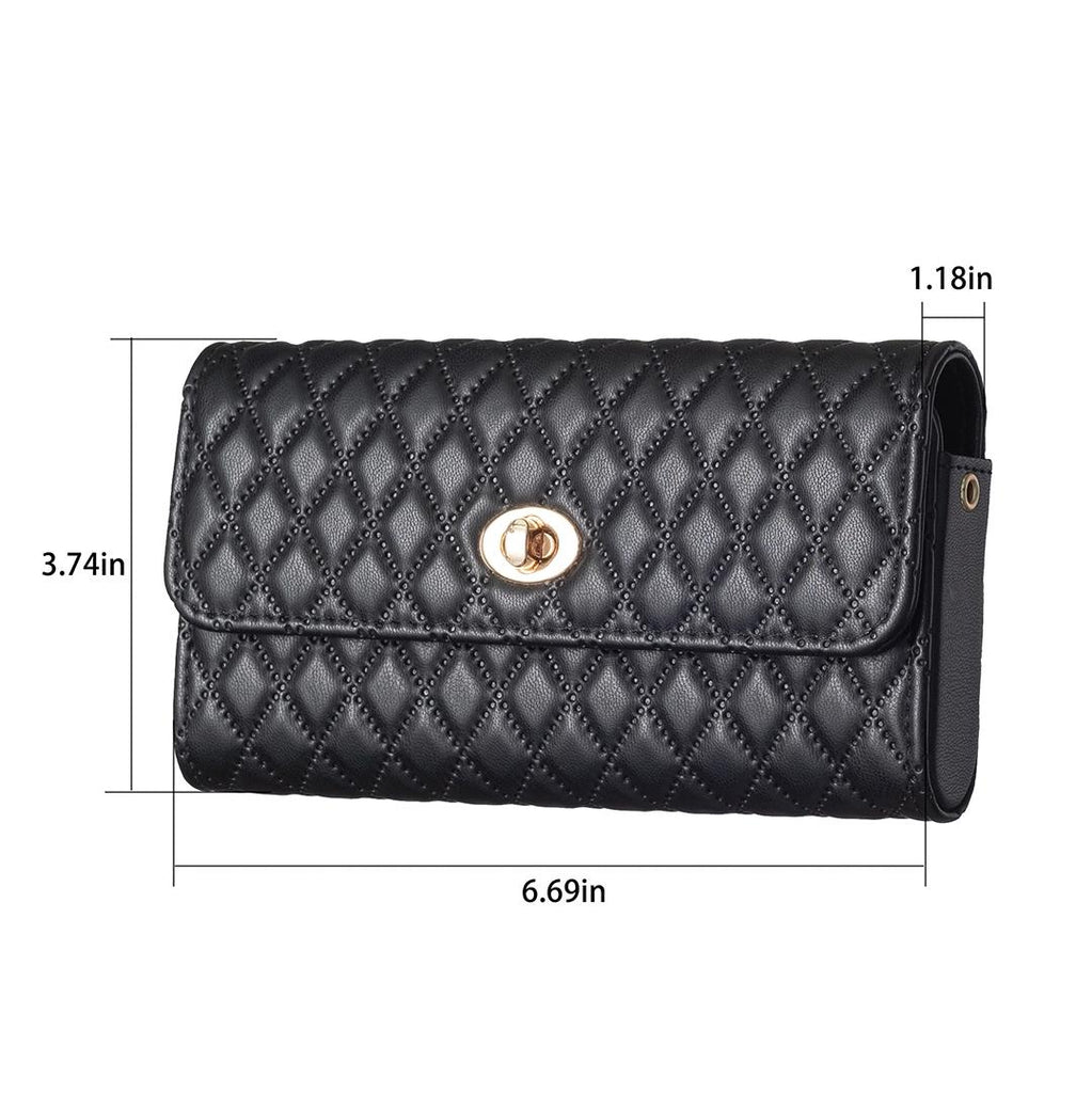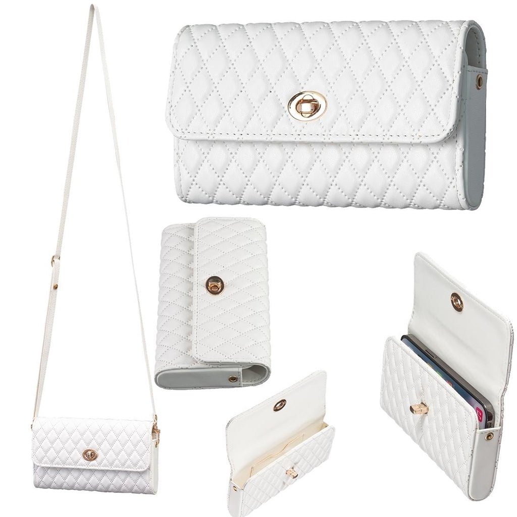 Faux PU Leather Quilted Crossbody Shoulder Clutch Bag Mobile White