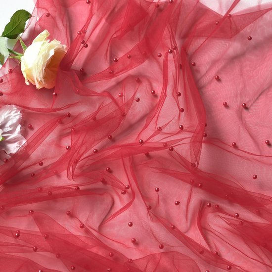 Give your party table an elegant and festive accent with this gauze veil. Embellished with delicate white pearls, it instantly adds a touch of sophistication and texture to any occasion.