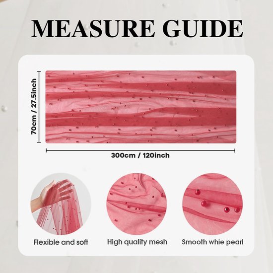 Refined With Pearl Embellishment: The veil features dainty white pearls attached to the soft gauze, creating a tactile, luxurious look and reflecting light beautifully.