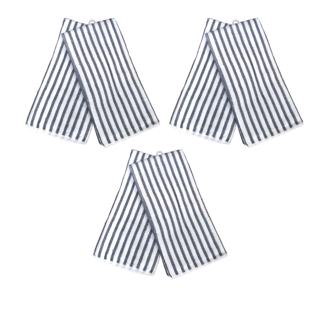 Set of 6 Microfibre Striped Tea Towels 40 x 60cm Charcoal Grey